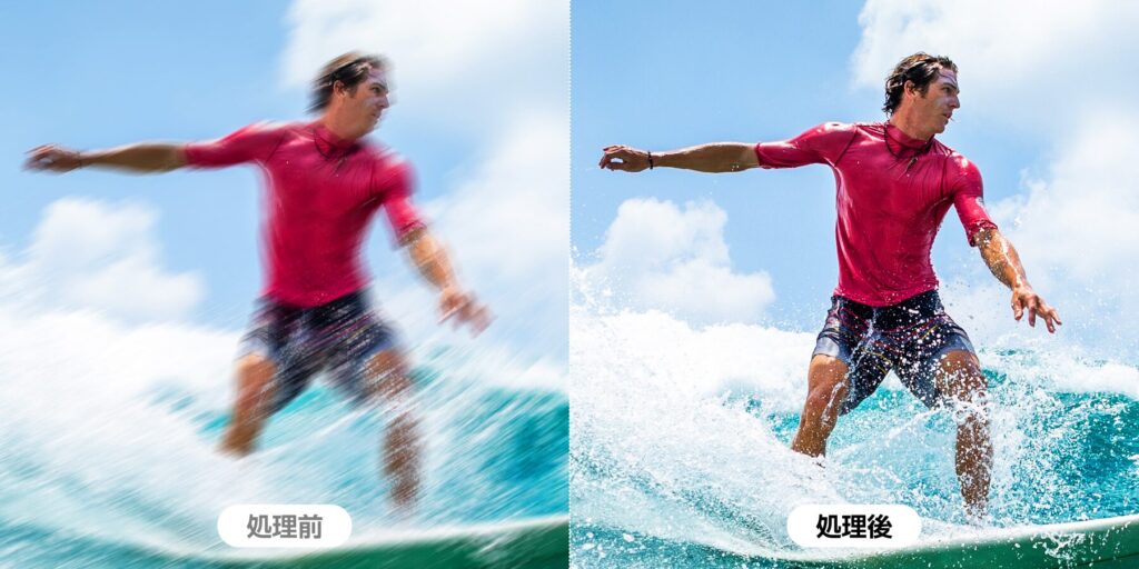 AIが映像の動きを解析し、フレーム補間やブレ低減を自動で行う機能です。