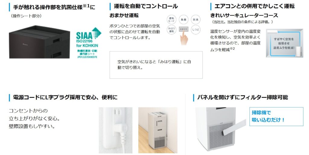 ダイキンの新型・旧型、加湿ストリーマ空気清浄機で共通する主な機能を、4つ、説明していきます。