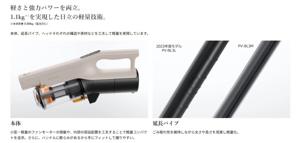 旧型(PV-BL3L)で満足度の高かった『軽量感』に、吸引力をプラスした新型(PV-BL3M)は、一段上の感動をもたらすでしょう。