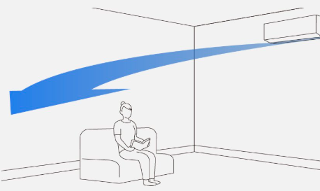 また、冷房や除湿運転時には、天井に沿って大風量で風を吹き出しエアコン下部から吸い込むことで部屋全体の空気を循環させ、冷え過ぎを防ぎつつ快適な環境を保ちます。