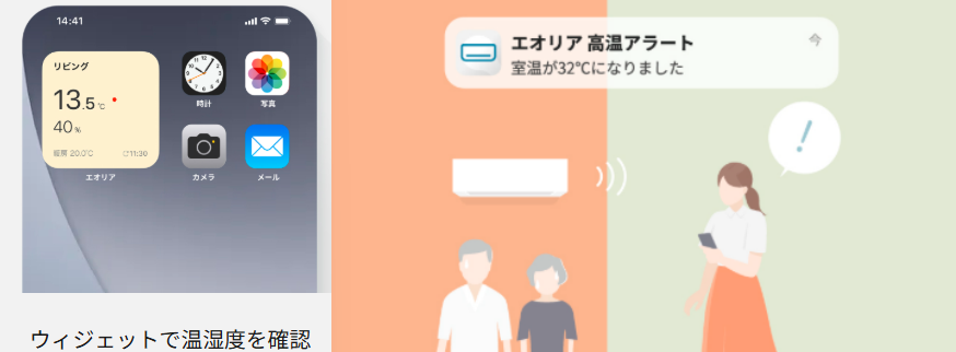 複数のエアコンをスマートフォン1台で一括管理できる機能で、子どもが寝ている部屋の温度を確認したり、家中のみんなが過ごす環境が一目で確認できます。