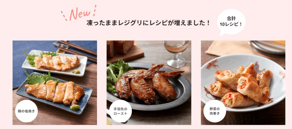 EVERINOオーブンレンジには、本格的な料理が簡単に楽しめるレシピが多くありますが、新型モデルES-GX26は、冷凍食材を使ったレジグリレシピが追加されました。
