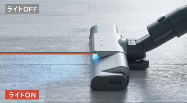 またLEDライトがヘッドに搭載されており、暗い場所はもちろん、明るい場所でも見えにくかったごみをくっきり浮かび上がらせ、しっかりとお掃除できるのも嬉しいポイントです。