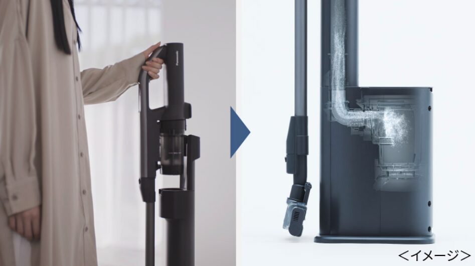 パナソニックのスティック掃除機新型・旧型は、吸引したごみは自動でクリーンドック内の紙パックに蓄積していくので、掃除が終わったらスティックを本体ドックに戻すだけでOK。