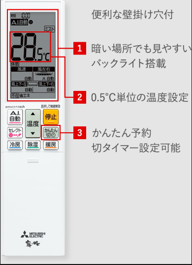 新型モデルMSZ-ZW4026Sでは、この機能が向上し、センサーが不在を検知した際の温度補正幅が従来の3倍に拡大さたことで、大きな省エネと快適性の両立を実現しています。