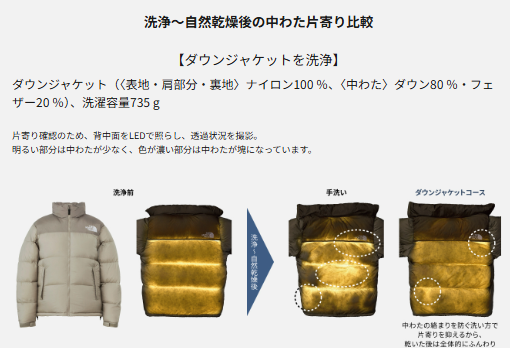 - 新型がオススメな人は、ダウンジャケットを家で洗いたい人