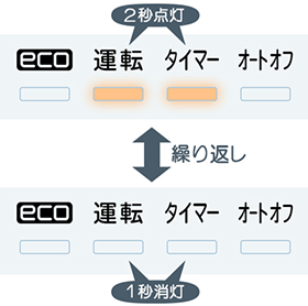 自動点検が開始されると、運転ランプとタイマーランプが同時に点滅(2秒点灯/1秒消灯)を繰り返します。