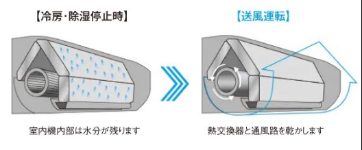 自動で2時間の送風運転を行い、室内機内部の水分を乾燥させる機能です!