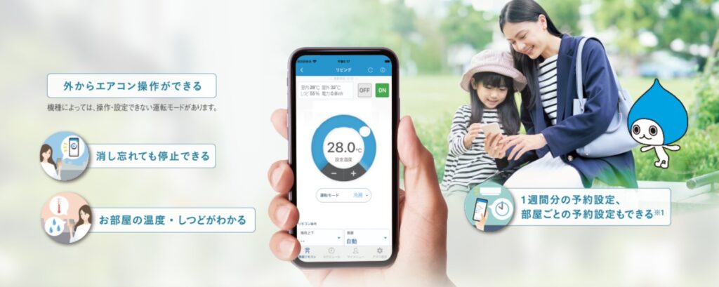 アプリでは、『帰宅に合わせた運転』や『外出時の切り忘れ通知』もスマホでできるので、とっても便利!