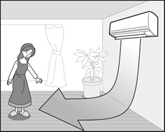 風量と上下風向を自動で調節して、風が直接体に当たりにくくする運転です。