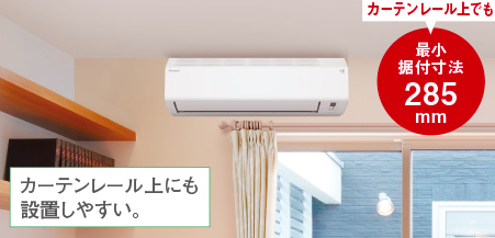 本体上部を斜めにカットした形状にすることで、吸い込みの効率化をはかり、コンパクトながらも高い冷暖房能力を発揮します。