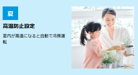 3つ目の共通点は「室温パトロール」の高温・低温防止機能です。