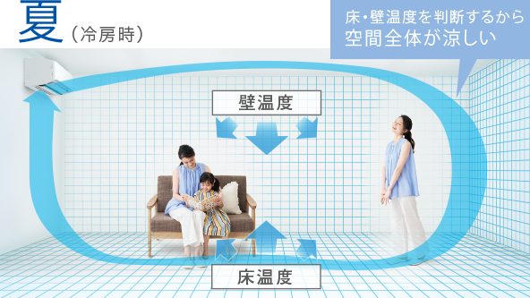 床や壁の温度をセンシングした検知内容と、好みに合わせて変更された設定を記憶して「好みの運転」として学習します!