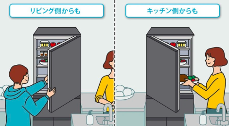 左右どちらからも開くことで、設置場所の自由度が一気に上がるね!