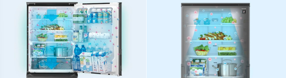 シャープが誇る、冷蔵庫内を清潔に保つ「プラズマクラスター」機能も、新型・旧型どちらにも採用されています。