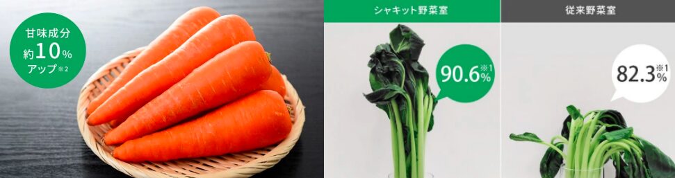 また、約2~7℃の安定した低温で野菜を保存することで、人参などの根菜類も甘みが引き出されます。