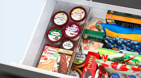 下段500mlのペットボトルを立てて収納できるほどの深型で、食パンや箱アイスなど、背の高い食品もたっぷり収納できる