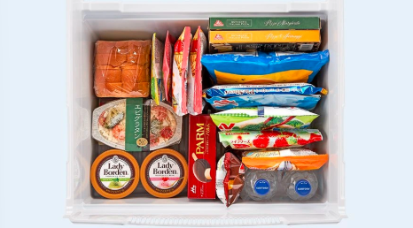 上段まとめ買いした冷凍食品などもキチンと立てて、見やすく取り出しやすく収納できる