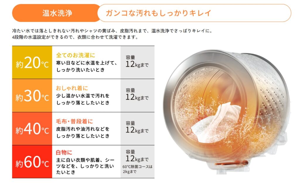 むっちゃん洗浄力も求める場合は、Hisenseのドラム式洗濯乾燥機だと物足りない可能性があります。