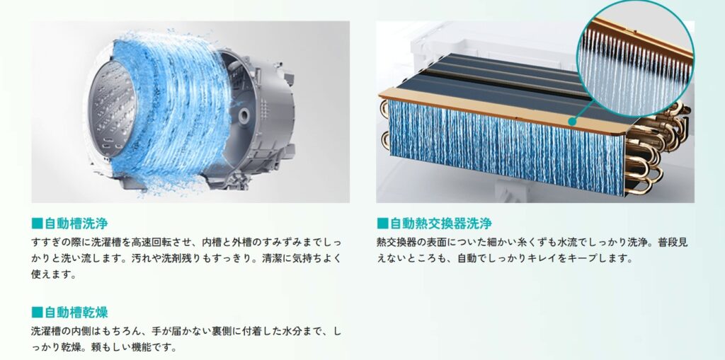しかも、掃除のしにくい庫内は、以下の3つの自動洗浄機能が、清潔を維持してくれます!